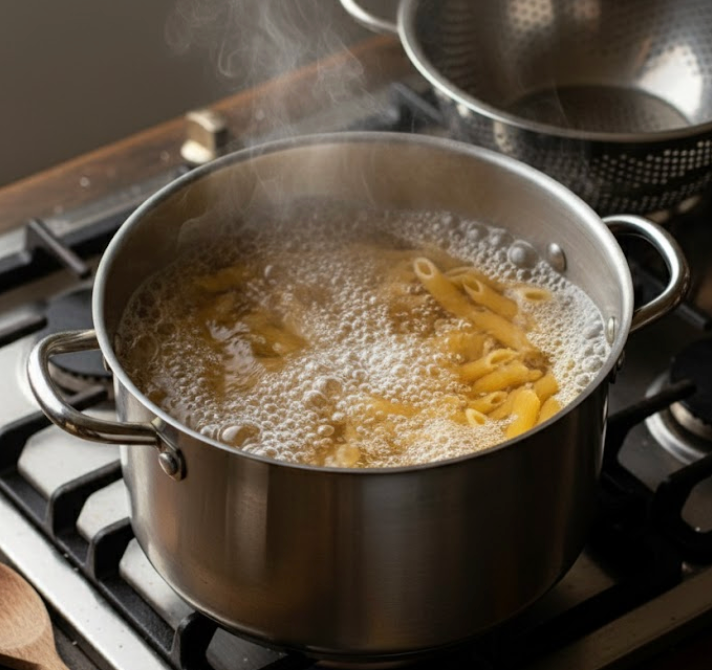 - Cook the pasta: Boil in salted water until just al dente (slightly firm). Drain and set aside.