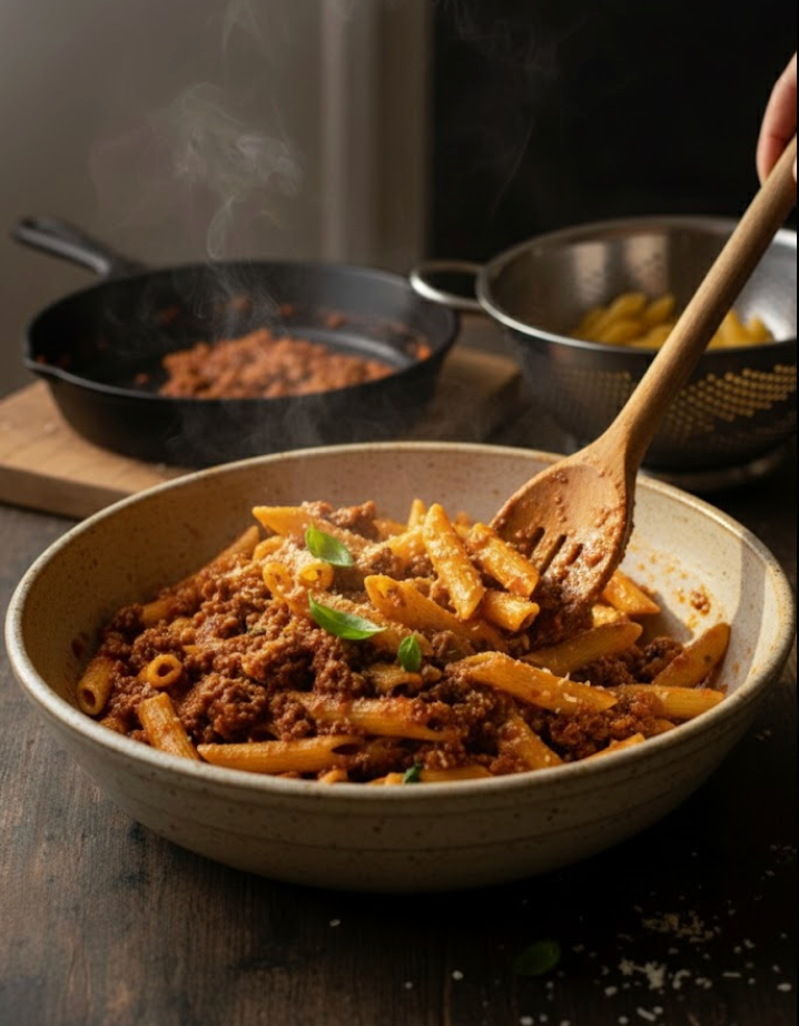 Make sure your sauce layer is generous — pasta soaks up sauce during baking. Cover the dish with foil for the first 20 minutes, then uncover for a golden finish.