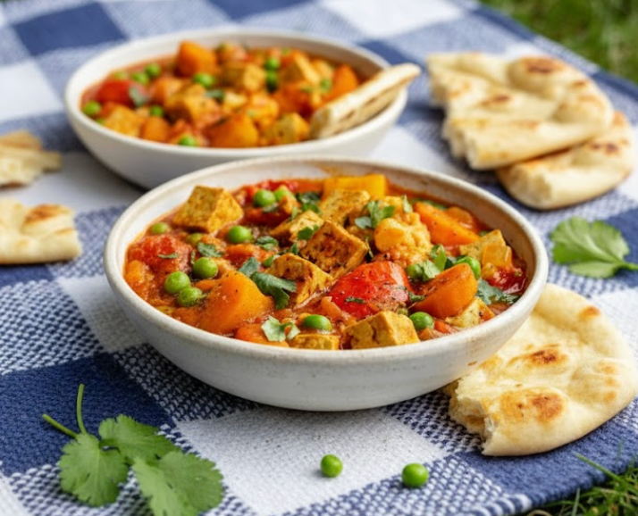 - Pair it with vegan naan, roti, or pita bread for scooping up the sauce.
