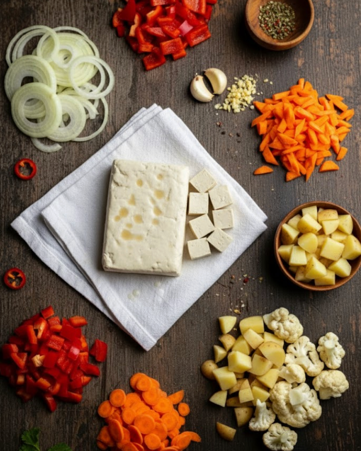 - High in protein: Thanks to extra-firm tofu and optional chickpeas, this meal keeps you full for hours — no protein worries here.