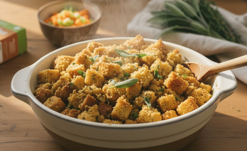 This casserole is one of those recipes that makes even non-vegans ask for seconds. It’s cozy, flavorful, and packed with all those nostalgic Thanksgiving aromas — sage, thyme, rosemary, and roasted goodness — without any dairy, meat, or fuss.